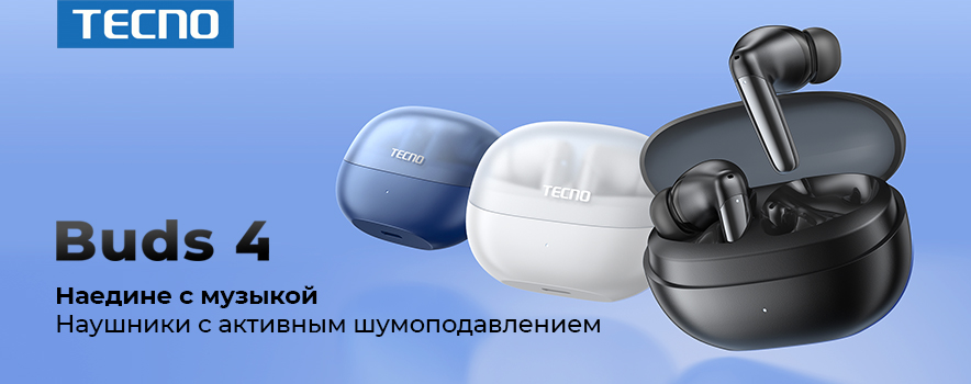 Гарнитура (наушники с микрофоном) беспроводная, TECNO Buds 4 Air, цвет черный
